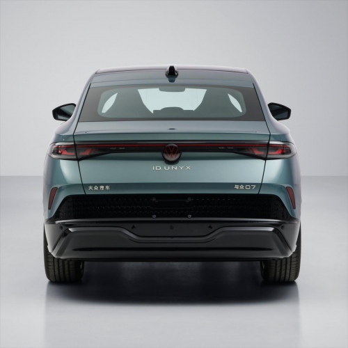 车尾部分,与众 07采用贯穿式灯带设计,车标同样运用发光设计,并使用金色大众标识,夜晚点亮后拥有着不错的辨识度。新车LOGO下方镶嵌了「ID. UNYX」字样标识,尾门左下角镶嵌「大众汽车」字样标识,右下角则镶嵌「与众07」字样标识,以此凸显其独特的身份。