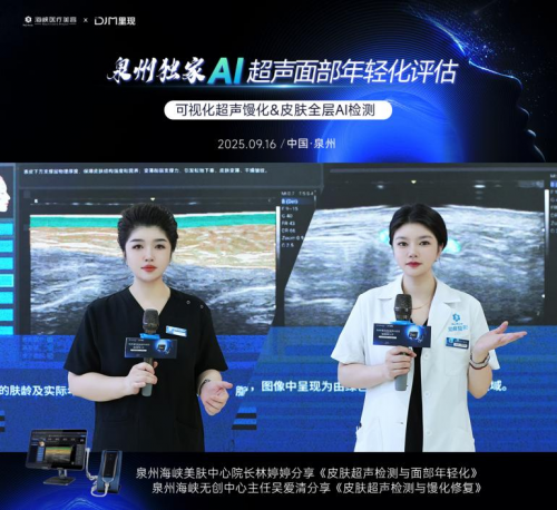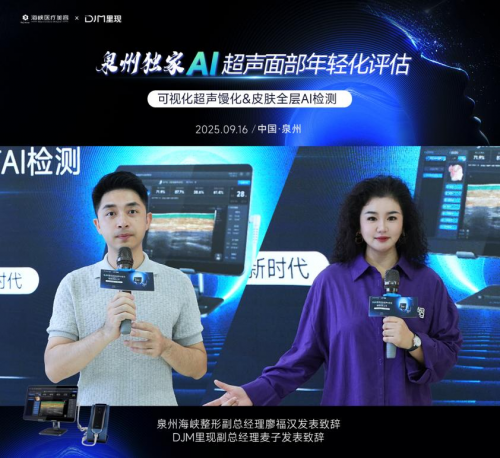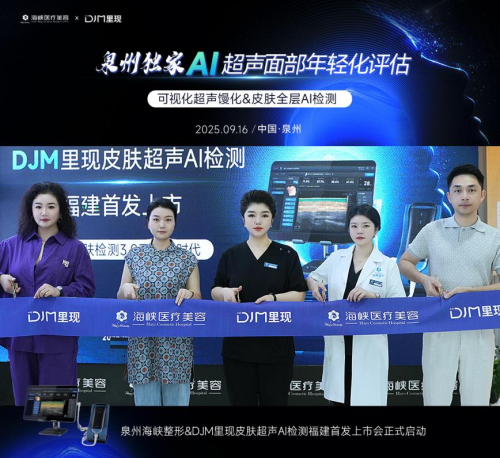 2025年9月16日,DJM里现皮肤超声AI检测福建首发上市在泉州海峡整形隆重召开。泉州海峡整形副总经理廖福汉,DJM里现副总经理麦子,泉州海峡整形美肤中心院长林婷婷,无创中心主任吴爱清等嘉宾共同出席本次活动。