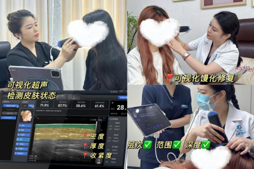 随后泉州海峡整形美肤中心院长林婷婷与无创中心主任吴爱清现场进行了DJM皮肤超声AI检测操作演示,它能实时呈现皮下多层次结构,并对胶原密度等关键指标进行AI智能分析,为制定精准抗衰方案提供了客观的数据支持,同时它可以精准定位皮下填充物,为解决“馒化脸”等问题提供了有力的数据支持。